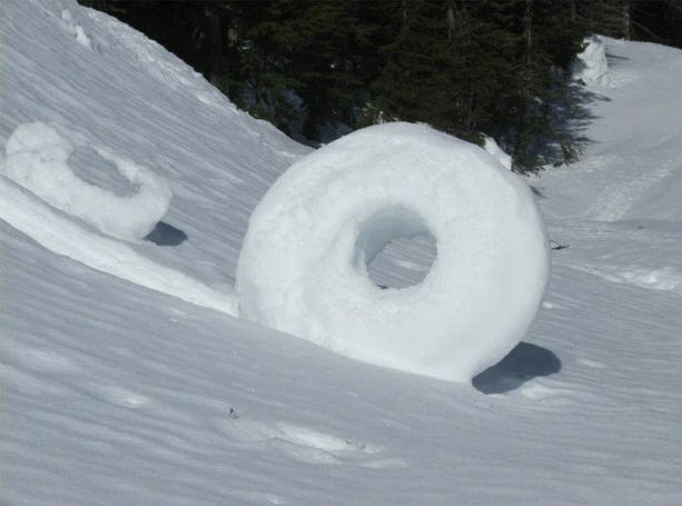 Se spomnite, kako so se v otroštvu, ko je snežilo, vsi hitro poskušali razvaljaj veliko snežno kepo? Ali ste igrali snežne kepe ali kipali snežaki. Narava ima svoj način kipanja iz snega – snežni krofi. Ta redka oblika se tvori v idealnih pogojih. temperatura med sneženjem ali snežno mero. Če je del sneg držijo skupaj z drugim delom, nato gravitacija in veter naredijo svoje del dela in com se sam valja. Toda v tem primeru težnja k stiskanje ustvarja obliko tora, ki lahko doseže do 66 cm noter višina.