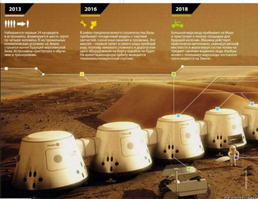 Naloga obvladovanja marsovskih gradbenih materialov je veliko pomembnejša, kot se zdi na prvi pogled. Magnetno polje planeta je izjemno nestabilni, magnetni pola ne sovpadajo s fizičnimi. Pomanjkanje stabilnega magnetnega polja in redke atmosfere naredijo površino planeta skoraj brezhibno pred sevanjem. Do danes tehnologija, ki je sposobna sčasoma zaščite astronavtov pred smrtonosnim sevanjem ne obstaja. Podzemna stanovanja bi lahko pomagala zavetju pred to nevarnostjo. UGOTAVLJANJE STAVK Glavna spletka projekta Mars One je sprejeta šteti financiranje. Ali bo mogoče zbirati s pomočjo oddaj dragocenih 6 milijard dolarjev – to vprašanje je na površini in je na osredotoča pozornost medijev. Drzimo si domnevati, da v V tem primeru denar ni glavni problem. Če bo vse uspeh, korporativni projekti se lahko ujamejo sponzorji in celo države. V teh dneh je veliko močnih ljudje, od katerih se postopoma seli vesoljsko raziskovanje sfere finančnih interesov na področju osebnih ambicij. To je ustanovitelj SpaceX Elon Maek in ustvarjalec Virgin Galactic Richard Branson, in prvi vesoljski turist Dennis Tito, ki ga, mimogrede, namerava pošljejo par na neprekinjeno marsovsko odpravo na 2018 leto. Žal tehnologija, žal, ni tako preprosta. Za danes ni petmetrskega Zmaja, niti tovornega roverja, brez dokazane zaščite pred sevanjem (tako za marsovske domove kot za samo za dolge medplanetarne polete), niti zanesljivo informacije o količini ledu v tleh. Hkrati ustvarjalci projekta resno računamo na šest uspešnih izstrelitev zapored in naprej brezhibno natančno prileganje vsaj 14 modulov. Čudeži všeč Ni znano. Po drugi strani si resnično želim pravljice se je uresničila. To bi obrnilo idejo človeškega priložnosti in o čudežih. Med vesoljsko dirko velesile si niso mogle privoščiti pravice do napake. Danes zasebni raziskovalci vesolja lahko v svoj projekt vključijo katero koli stopnja tveganja je njihov denar in njihovo življenje. Prekrižite prste zanje in počakajte deset let. Priljubljena mehanika marec 2013
