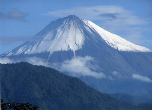 Fotografija odprtokodni vulkan Santa Maria se dviga zgoraj tiho obalo v Gvatemali. Njegova višina je 3772 metrov nad morska gladina, struktura pa je sestavljena iz izmeničnih plasti pepela in lava. Leta 1902 je vulkan Santa Maria proizvedel enega najbolj katastrofalnih izbruhov 20. stoletja, ki so povzročili precejšnje škoda po vsej jugozahodni Gvatemali. 5. Sangay