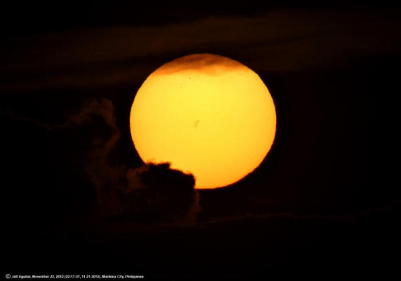 Sončna točka 1618 je tako velika (10-krat večja od diska Zemlja), da se Jett Aguilar ni mogel upreti skušnjavi, da bi to storil osupljiv posnetek zjutraj 22. novembra, ko je sonce le vzhajalo Filipinsko prestolnico.