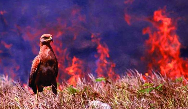 V ta namen so avstralske plenilke v Avstraliji, zlasti rjave sokol, kooshoo in črni zmaj, ki so jih videli v takšni triki sodelujejo pri širjenju ognja in prenesti v gozdove, zaščitene pred naravnimi požari (ob rekah) ali umetne (jarke) ovire. Perje v tem primeru se plenilci zbirajo v majhnih jatah, bodite pozorni smrdijo palice in nato “ognjeni plen” po zraku premaknejo v najboljši, po njihovem mnenju, mesta za drug požar, pogosteje le nekaj kilometrov.