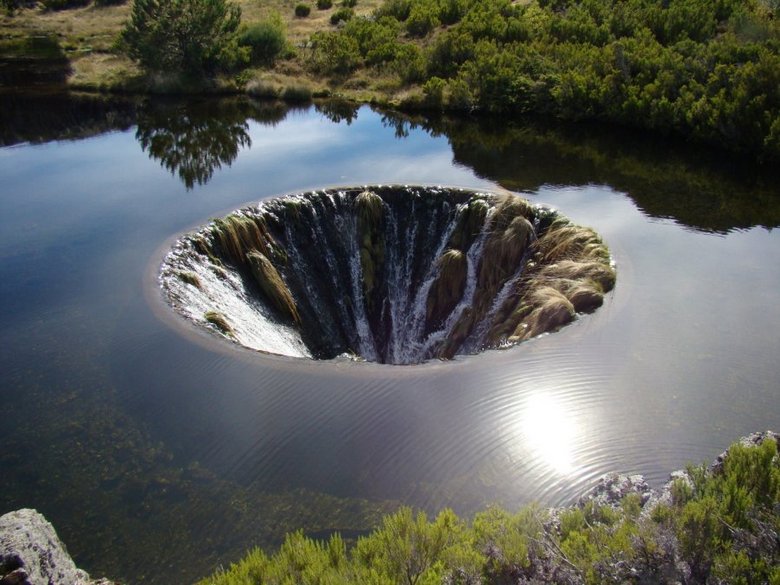Vendar nobene fikcije ali celo kakršne koli naravne anomalije sploh ne tukaj. Luknja v jezeru je umetna, saj rezervoar – rezervoar Konchos hidroelektrarne Lagoa Komprida. A “strašni lijak” v njem je samo hidravlični odtok odvečna voda. Zato lijak v jezeru še zdaleč ni konstanten, pozimi in poleti je tu komaj videti, spomladi pa v gorah sneg se topi in voda hiti navzdol, preplavlja lokalna jezera, tudi tudi ta rezervoar, kaže tako fantastičen, preprosto očarljiv whirpool.