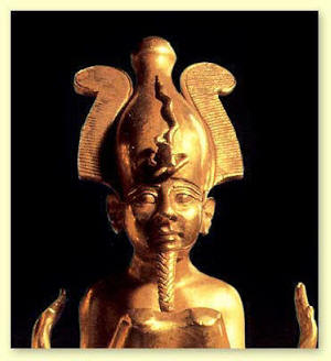 Fotografija od odprtih virov so bili bogovi sami nadnaravno sposobnosti. Vendar so imeli lastnosti smrtnih ljudi in jih je bilo več videti kot predstavniki visoko razvite tehnične civilizacije, kot na bogove. Po legendi, kljub veliki moči, oni bi lahko zboleli, se postarali in umrli in pod določenimi okoliščinami lahko bi jih celo ubili. Na primer, opisano je, kako so se postarali in postali popolnoma šibek nekoč mlad in energičen prvi vladar Egipt modrooki Ra. Veljalo je, da imajo bogovi domovino, čudovito in oddaljeno deželo, ki so jo v starodavnih besedilih imenovali Ta-Ne-Teru, Dežela bogov. Do tja je bilo mogoče priti le po morju, na ladji. Slavni Oziris V templju faraona Setija I, ki je popravljal bog starih zgradb je bog Oziris skoraj fizično prisoten v osupljiva simfonija bazenov, ki krasijo stene in se hranijo naprej stoletja, podoba kralja-civilizacija, ki je sedel na prestolu v družba njene lepe in skrivnostne sestre Isis. Na slike Ozirisa je mogoče videti spiralno ceremonialne pokrivalo bogov iz prvega časa in domišljijske krone. Še posebej zanimiva je tako imenovana atef krona. Bila je bela vojna čelada – živa meja in na njej – Urey – v obliki ni samo simbol kraljeve moči pripravljen napasti kobro in neznano orožje po načelu delovanja o katerih še vedno nimamo pojma (v besedilu – “božansko.” kača, sposobna raztresti sovražnike “). S strani čelade se je dvignil dve tanki kovinski plošči, spredaj pa je bila neka vrsta naprava dveh valovitih rezil. Na večih reljefih Oziris je upodobljen natančno v kroni atefa. Po knjigi mrtvih oz. Ra mu je podelil krono: “Toda že prvi dan, ko ga je oblekel Oziris, glava ga je bolela in ko se je Ra zvečer vrnil, našel je Ozirisa z bolečo glavo in otekel od vročega krone. Ra je moral celo sprostiti gnoj in kri. “Kaj je to krono, ki je tako vroča, da koža začne krvaveti in abscesi? Arheologi za vsa leta izkopavanja sploh niso našli kosi takega klobuka! Oziris v kroni Atefa