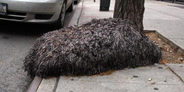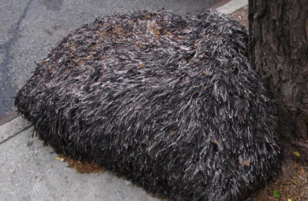 Na newyorškem območju Carroll Gardens (Brooklyn) po močan dež Kate Thompson (avtorica fotografije) so opazili čudno in precej velika “dlakava kroglica”, ki diši po morski živali in ki leži ob drevesu, poroča whofortedblog.com. Thompson slišal, da lokalni ljudje razpravljajo o pojavu nenavadnega predmeta in uspelo ga je fotografirati, preden je kmalu tudi nepričakovano izginil kot se je zdelo. Po besedah enega od očividcev je šlo za nekakšno žival, saj je jasno videl, kako se počasi premika.