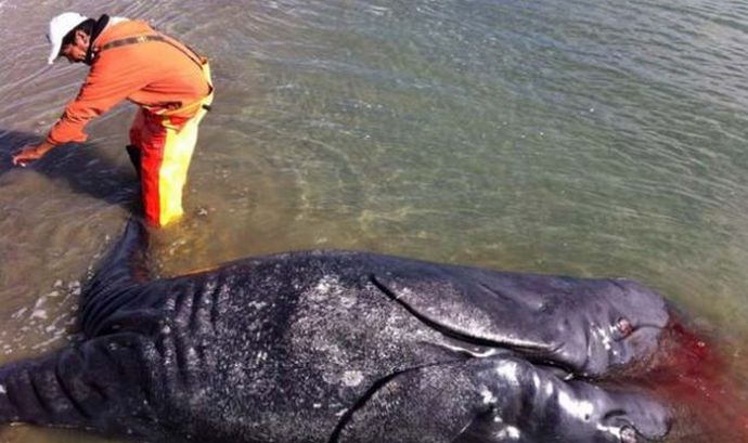 In zdaj se zdi, za znanstvenike novo priložnost Siamske dvojne kite. Res je, za razliko od mucka, to čudna žival je precej velika in je bolj videti najstniški kit. Vsekakor redek primerek morske živali Zdaj jo pridobivajo iz vode in jo preučujejo specialisti. Najverjetneje truplo dvoglavega bitja bo poslano v najbližje raziskave ustanova.