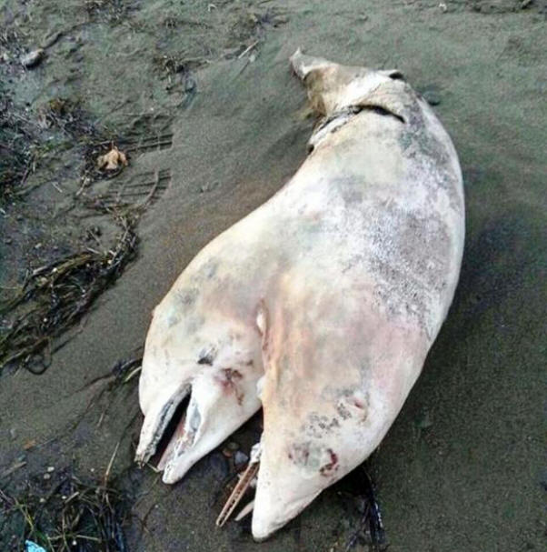 Dvoglavega delfina so odpeljali na eno od turških plaž. Telo mrtvega mutanta, ki so ga našli na obali v Izmirju. Opazil ga je domačin rezident – učitelj fizične vzgoje Tugrul Metin.