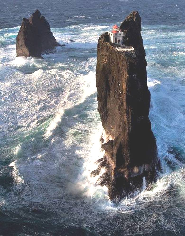 Ta nedostopna skala je oddaljena šest milj od obale. Islandija, njegova višina je približno 60 metrov. Od treh je najvišja kot kamniti vrhovi, ki se razbijajo iz morja. Vstanite tukaj brez helikopter – in danes ni lahka naloga, zato si lahko predstavljate podvig gradbenikov, ki so to skoraj ročno zgradili edinstven predmet.