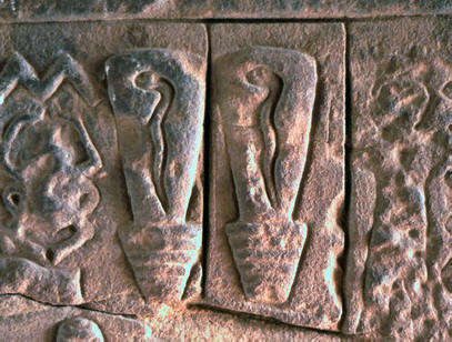Te bučke ali mehurčki so zelo podobne velikanskim električnim žarnicam z domišljijo vijugajočimi kačami v notranjosti. Krvave glave so kronale cvetovi lotosa, nekoliko spominjajo na nosilce svetilk. Nekaj podobno kot kabel, priključen na okence blizu simbol moči je “jed steber”, vezan tudi na kače.