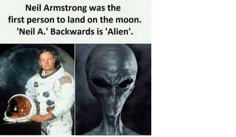 V enem od njegovih tvitov na znanem družbenem omrežju Twitter Ilon Musk (bodisi za šalo ali resno) je izjavil, da je prva oseba ki je obiskal Luno, Neil Armstrong – ni tako preprosto: če preberite njegov kratek opis fotografij “Neil A.” obratno v togi dobimo besedo “tujec” – “tujec”. In izkaže se, da Ameriški astronavt – tujec.