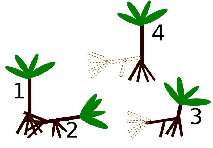 Po besedah paleobiologa Petra Vrsanskyja, ki dela v Bratislava akademija znanosti, ko hranila v zemlji pod palma je izčrpana, drevo iz debla sprosti dolge korenine, ki se uporablja za iskanje rodovitne zemlje v bližini. Mlade korenine poiščite primeren košček zemlje, prodrite v notranjost in začnite vleči deblo drevesa počasi vleče s starega mesta korenine. Potem se palma spet dvigne, stari koreninski sistem in spodnji del prtljažnika umre in se spremeni v gnojilo. Višina drevo se zmanjša, vendar se takoj začne intenzivno da raste.