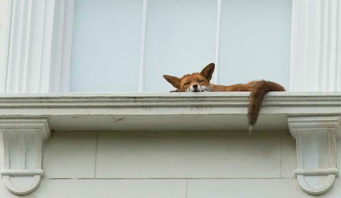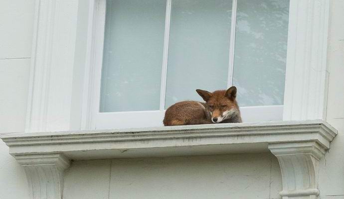 Fotografija iz odprtih virov Mestne lisice so zloglasne po svojih pogum in želja, da bi se podali na najbolj prepovedane kraje. Prebivalci Londonsko območje Notting Hill se je začudilo, ko so to videli žival na okenskem oknu lokalne hiše. Izgledalo je kot lisica odpeljana tja samo od nikoder. V tem primeru se je obnašala rdečelaska lepotica popolnoma miren in dremljen večino časa.