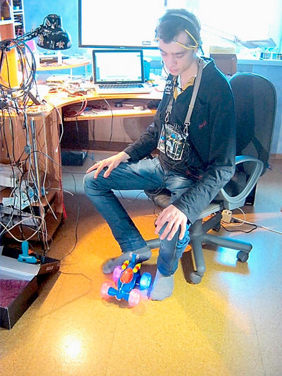 Donchanin Vladimir Grankovsky, študent Oddelek za računalniško tehnologijo Doneck National Tehnična univerza, stara komaj 21 let, a je že avtor več znanstvenih dogodkov. Zlasti ve, kako upravljati miniaturni model avtomobila … z močjo misli. In mu pomaga to ni telekineza, ampak poseben računalniški program, ki pobere električne impulze svojih misli in premika stroj noter določena smer. “Moj posameznik parametrov, za drugo osebo bo računalnik moral biti ponovno konfiguriran. ” – Zdaj gremo naravnost, nato levo, – majhen zapove Volodja plastični pisalni stroj na baterije. Svetel mini model po volji uboga in se premika v pravo smer, utripa osvetlitev ozadja. – Jaz Osredotočim se na smer gibanja z uporabo različnih barv: na primer, če želim avto poslati naprej, si predstavljam tema, ki se odmika od mene na rdečem ozadju, razlaga Vladimir Grankovski. – Na levi je modra itd. Od našega misli oddajajo električne impulze, nato senzorje (med Eksperimentator si nadene posebno čelado. – Avt.) Ukrep napetost tega toka se prenaša na računalnik. Računalnik meri spekter napetostnih frekvenc na različnih točkah glave. Potem primerja te vrednosti s tistimi, ki sem jih prej zabeležil program.