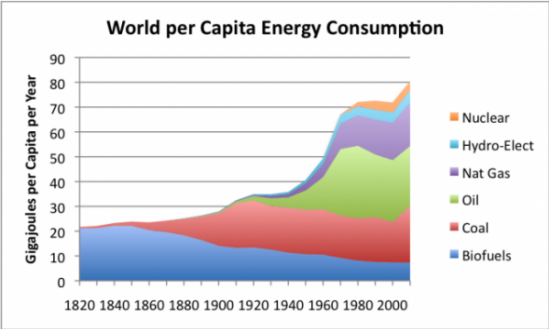 Od leta 1800, zahvaljujoč povečanju proizvodnje fosilnih goriv, prišlo je do močnega skoka števila ljudi in občutnega povečanja raven njegovega življenja.