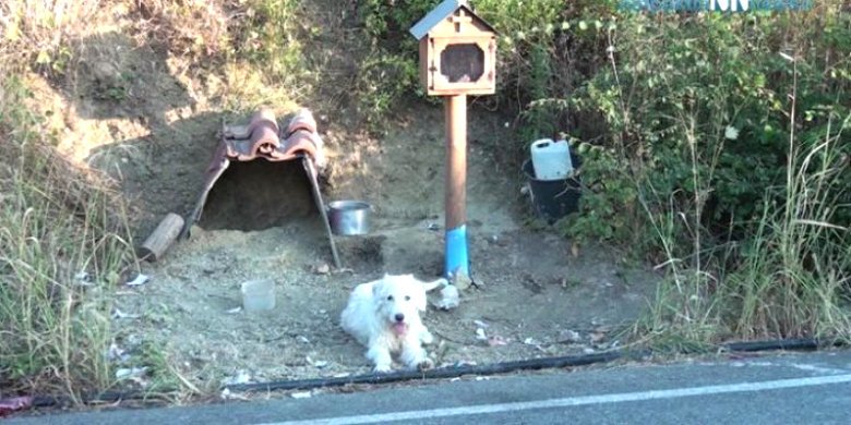 Ni znano, ali je bil v avtomobilu med nesrečo, a domač prebivalci pravijo, da psa vidijo od tragedije. Po brezupnih poskusih pobrati psa, ki so ga zgradili zanjo improvizirano zavetišče, kamor so začeli prinašati in prinašati hrano in voda. Pes preživi vse dni ležeč ob strani ceste in gleda v daljavo, kot da čakal, da se lastnik vrne in ga odpelje domov. Pes noče se premikajte tudi v vročih dneh in se le v slabem vremenu zateče vase bližnji grmi.