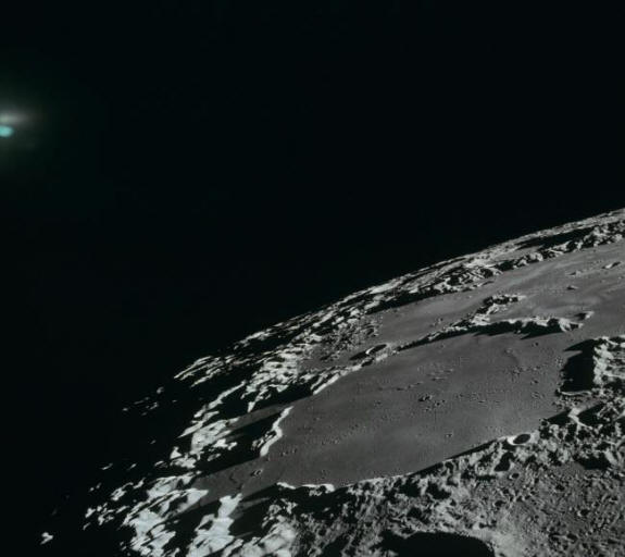 Ta fotografija je bila posneta med letom Apollo 15. O skrivnostnem luči na površini lune so poročale o drugi posadki Apolla 11. Od neuradni viri vedo, da so prikriti svetlobni predmeti so se približali Apolonu 12 in lovili Apolon 13