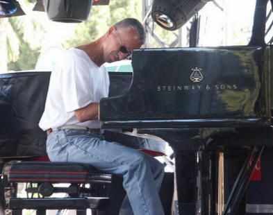 Ameriški pianist Keith Jarrett predava svojemu občinstvu sredstvo za preprečevanje kašlja, da se v dvorani zagotovi tišina koncert