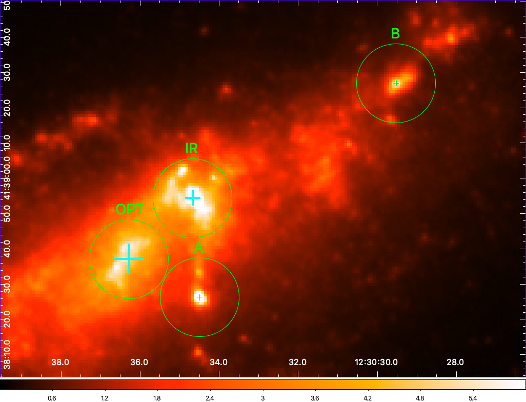 'Na primer, raziskava Spitzer Infrared Nearby Galaxy (SINGS) je raziskala vzorec 75 bližnjih galaksij, ki predstavljajo celoten spekter Hubblovih tipov. Čeprav to ni popolna raziskava, je zanimivo omeniti, da nobena od opazovanih spiralnih galaksij ne kaže dvojne morfologije v bližnjem in srednjem infrardečem območju, kot vidimo v NGC 4490 '.