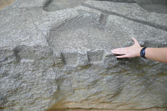 Na vrhu megalita so bile niše, ki so bile, mimogrede, popolne liti, izrezljani, staljeni … (pravilno izberite besedo)! Brez dleta, ročnega dela, z dletom je bil. Material Masoud Iwafun je granit, kot je zapisano v opisu v bližini megalita in tudi sam sem, ko sem ekstrahiral vzorec kamnine, v redu trajalo je približno 30 minut. Na pasmi je težko pustiti praske!