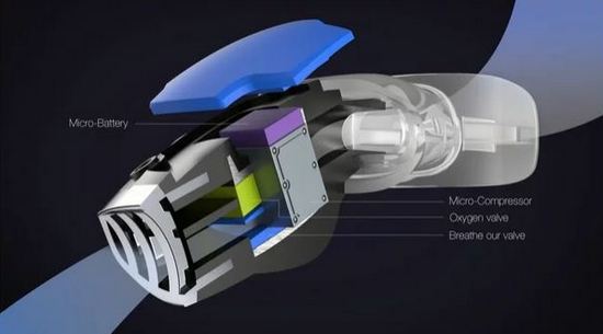 Umetna škrge so poseben filter za črpanje iz vode kisik, mikroprocesor, vibracijski motor in izstopni ventil z vdihani zrak. In seveda – prilagojeni litij-ion baterija, ki postavlja mejo iskanja moderne Voda Ichthyander z vodo …