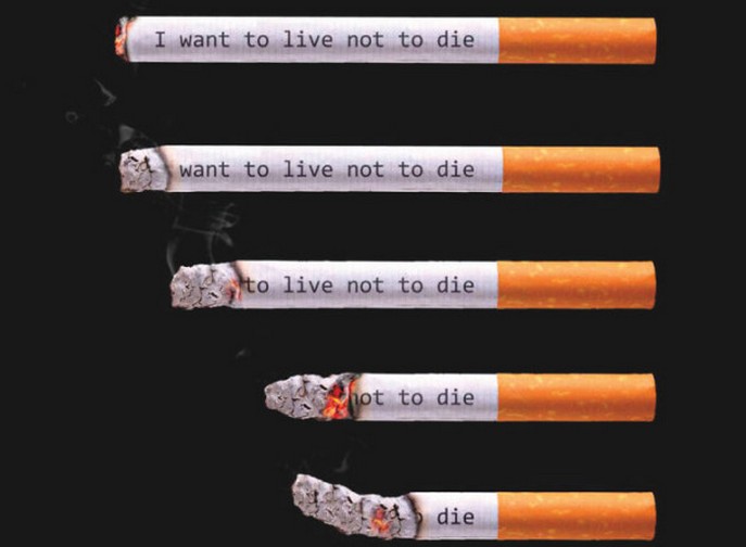 Cigarete, ki kot kadijo, spremenijo napis “Želim živeti, ne umreti”, na kratko – “umreti.” Vredno bi bilo vsega cigarete zagotavljajo nekaj podobnega …