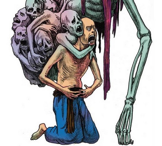 Veliko zgodb govori o tem, kako človek hodi zraven gorska pot na Japonskem nenadoma zajame občutek divjega, nikoli prej niso občutili lakote. Ta občutek ni samo popolnoma premočan, a tudi skoraj nepremostljiv. Pogosto spremlja ga nerazložljiva utrujenost in celo čudno otrplost okončin, zakaj popotnik pade na tla in hkrati ne razume, kaj se z njim dogaja. Če mu ne pomagaš pravočasno, človek se bo noril in umrl, po smrti pa bo sam postal lačen duh Dežele vzhajajočega sonca …