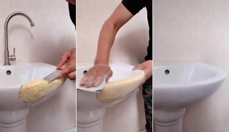 Z vključitvijo spodnjega videoposnetka, ki ga je posnel 31-letni prebivalec mesta Qingdao, lahko vidite, kako najprej posuši briketi rezanci v čipu sanitarne opreme, nato voda vse to s silikatnim lepilom in začne dajati z dletom dobljena struktura potrebno obliko. Na koncu obrtnik prekrije z emajlom in barvo, rezultat pa je resnično presenetljivo: umivalnik je zdaj videti kot nov!