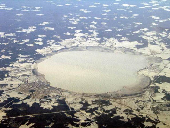 Radovedno jezero Chukhloma v regiji Kostroma. Njegov premer je približno 10 kilometrov. To bi se lahko oblikovalo v rezultat močne zračne jedrske eksplozije, verjetno še več 100 mt Epicentar naj bi bil lociran nekaj kilometrov nad površino. V takšnih pogojih udarni val pritiska na tla več deset metrov globoko, vendar do njegovega izpusta ne pride. Te vrste eksplozije se uporabljajo za uničevanje zemeljskih ciljev in ljudi veliko ozemlje s polmerom reda 1.000-2.000 kilometrov.