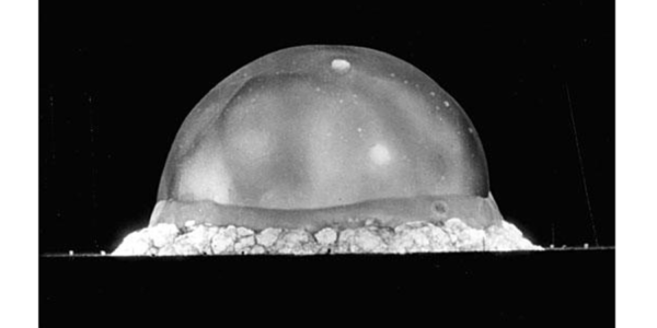 Preskusi bomb so bili prvič opravljeni v bližini mesta Alamgordo v zvezni državi Nova Mehika v ZDA julija 1945. Ko se je prah po eksploziji te plutonijeve bombe polegel, so se nekatere rdečkaste kamnite skale spremenile v svetlo zeleno steklo. Ta kozarec se imenuje “trinitit”.
