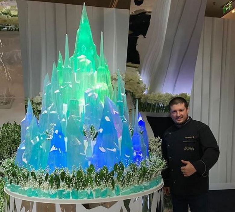 Lani je Renat Agzamov še enkrat prejel mednarodno priznanje za impresivno 13. poročno torto ft (kar naj bi stalo 179.000 USD). Zasnovan kot pravljični grad z ducatom izvrstnih stolpov, balkoni, miniaturne figure in notranja razsvetljava, tehtanje torte Za odmevno kazahstansko poroko je bilo naročeno 1500 kg.