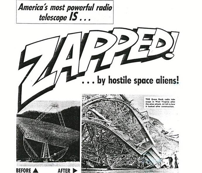 Takrat so nekateri ameriški novinarji to menili napravo so uničili predstavniki nezemeljske civilizacije. Spodaj je na primer odlomek iz časopisnega članka, naslov ki pravi: “Najmočnejši ameriški radijski teleskop se zbriše z zemlje sovražni tujci iz vesolja! “Nekdo bo rekel:” In še kaj pričakovati od rumenega tiska? “Vendar pa ni vse tako preprosto. Takrat ni novinarji morda niso zmotili tako glasne izjave.