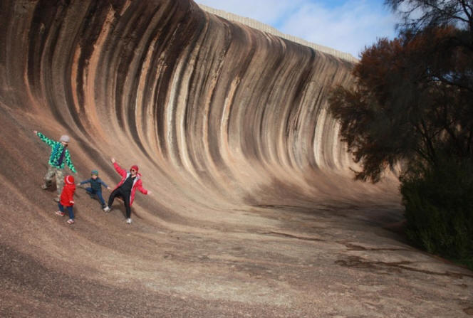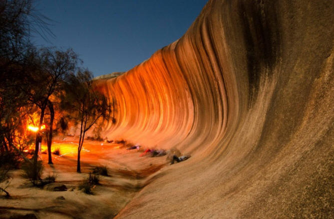 Fotografija s odprtokodni “Kamniti val” – naravna skala tvorba, ki po obliki spominja na visok oceanski val, ki se bo zrušil na obalo. “Val” je visok približno 14 m in približno 110 m dolžine. “Kamniti val” tvori severno stran samotni hrib, ki je znan kot “Hayden Rock”. Ta hrib se nahaja približno 3 km vzhodno od majhnega mesta Hayden in 296 km jugovzhodno od Pertha, Zahodna Avstralija. Kamen val in senena skala sta del svetišča divjih živali, ki si ga delijo površina 160 hektarjev.