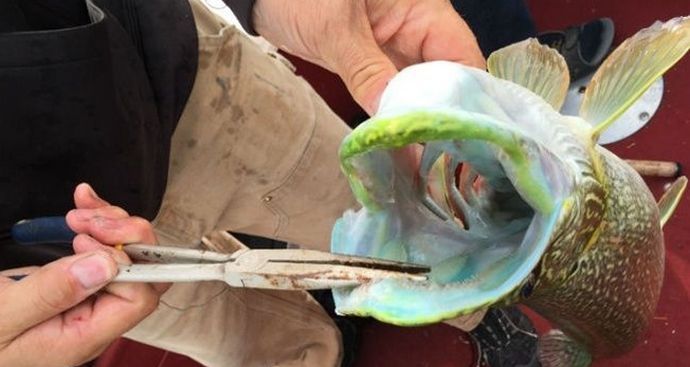 Najbolj nenavadna ščuka, ujeta na kaveljčku kanadskega ribiča Randy Streiker iz Yellowknifea. Ribe so bile seveda velike, vendar to ni najbolj vplivalo na ribolov, še posebej ker obstajajo ščuke in veliko večji.