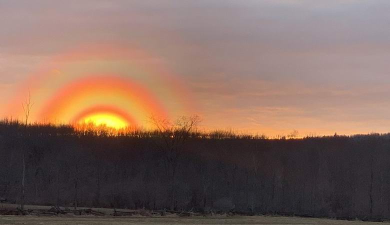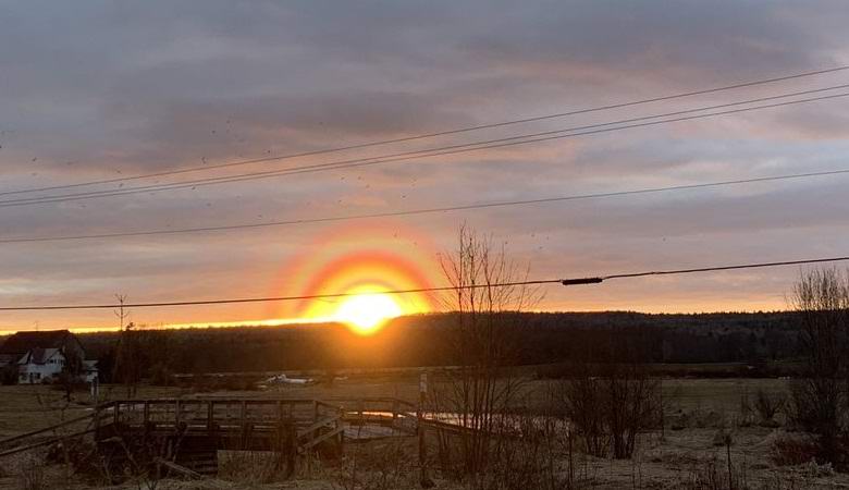 Prebivalec kanadskega otoka Manitoulin, Ontario, je pred nekaj dnevi postal priča zelo nenavadnemu pojavov. Christina McNaughton je ob sončnem zahodu opazila neverjetno koncentrični svetlobni obroči, ki nastajajo okoli sonca, in Pohitel sem jih fotografirati.