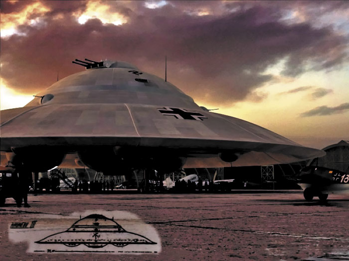 Od leta 1943 pri razvoju projekta sodelujeta Sigun in Orshich “Aldebaran”, torej že praktičen let naprej vesoljska plošča, projekt, ki ga podpirata Himmler in celo sam Hitler. Prvi preizkusni let je bil izveden v konec leta 1944. Od konca se je končalo skoraj tragično leteči krožnik Vril7 se je vrnil na Zemljo v takšnem stanju kot da bi več sto let letela v vesolju. To je omenjeno glavni element takega stroja je bil nekaj fantastično rdečega prah, ki se je stopil v “rdeče živo srebro”. Pri odvijanju do določene hitrosti je začela snemati gravitacijsko polje, ki je letečemu krožniku omogočilo premagovanje velike razdalje prek brezčasnega portala. Vendar podobno ladjo je lahko nadzirala samo ženska, ki bi hkrati morala bil nenehno v orgazmu. Takšne v tistem času lahko izvedel samo Sigun.