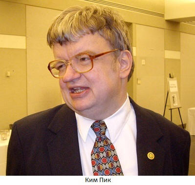 Leta 1984 se je Kim Peak po naključju srečala z Američanko Novinar Barry Morrow. Morrow je naknadno napisal scenarij Film Rain Man, prototip glavnega junaka Raymonda Bebbita to je bil Kim Peak. Neumni genij Daniel Tammet pred kalkulator pomnoži 4-mestna števila v mislih, kvadratih in kocko, doda, razdeli, izvleče korenine in razdeli 13 na 97 s natančnost do 100 znakov. Tečno govori 11 jezikov. Do da bi dokazal svoje jezikovne sposobnosti, se je začel učiti neznanec prej je bil islandski. Po sedmih dneh (to ni napačna napaka, to je sedem dni!) je v Islandiji dajal intervjuje v živo jezika.