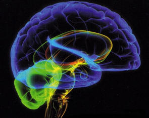 Običajna možganska tomografija, možgan v rdeči barvi