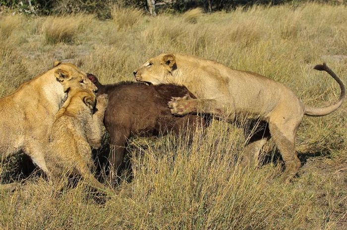 Vendar imajo plenilci v tem velikem prednost neustrašen, lov v jati, ki je hkrati zelo organiziran in neumorno pri doseganju svojega glavnega cilja v življenju – doseči meso za kosilo. Hkrati se v večini primerov levi poskušajo ponovno ujeti iz jate bivolov najbolj slabokrvnih živali in še bolje – mlada rast.