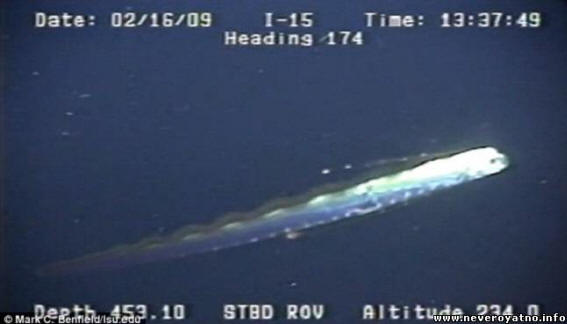 Kralj sleda ali pas – riba najdemo v toplih vodah Atlantski, Tihi in Indijski ocean, že ujeti kralja veliko sreče in skoraj ni bilo mogoče posneti videa, ker ta neverjetna riba živi na globini približno kilometer, ne vsi Bathyscaphe se lahko potopi do take globine, da ne omenjam človek. In zahvaljujoč se nadzorni kameri, ki je pregledala vrtalna ploščad v Meksičnem zalivu, ki jo lahko vidimo v naravni habitat.