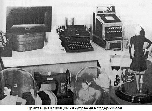 Medtem so znanstveniki s spoštovanjem odpihnili prah s predmetov na videz neznačilne: stolčki, blazine, stoli, rokavice. Loki, biči, modeli čolnov, košare s sadjem, igre – vsi ti predmeti iz kamna, alabasterja, gline, lesa niso bili manj dragocene od zlatih zakladov, ker so zagotavljale neprecenljivo vrednost informacije o življenju, običajih in vsakdanjem življenju starodavnega Egipta. To je spodbudilo predsednika univerze Allthorpe Thornwell Jakoba, da zbere zbirko predmetov XX stoletja in jo pošlje prihodnje generacije. Projekt so poimenovali “Kripta civilizacije”. V 1937 Jacobs zmagoslavno napoveduje zagon na radiu NBS projekt. Skoraj tri leta smo se lotili izbora predmetov Dolga je bila razprava. Nakit umetniških del je izstopal seznam najprej. In kaj je ostalo tam? Vsebina Kripte civilizacije Več kot 800 knjig: Biblija, Koran, dela Homer in Alighieri ter druge svetovne klasike, dela na zgodovini, enciklopedije, znanstvena dela. Knjige, napisane na celuloznem acetatu film. Znanstveni in tehnični instrumenti, arhiviranje časopisov. Izbor fonografski posnetki: glasovi Josepha Stalina, Franklina Roosevelt, Adolf Hitler, Mussolini, glasbene skladbe. Filmski koluti, projektor in čitalnik mikrofilmi.