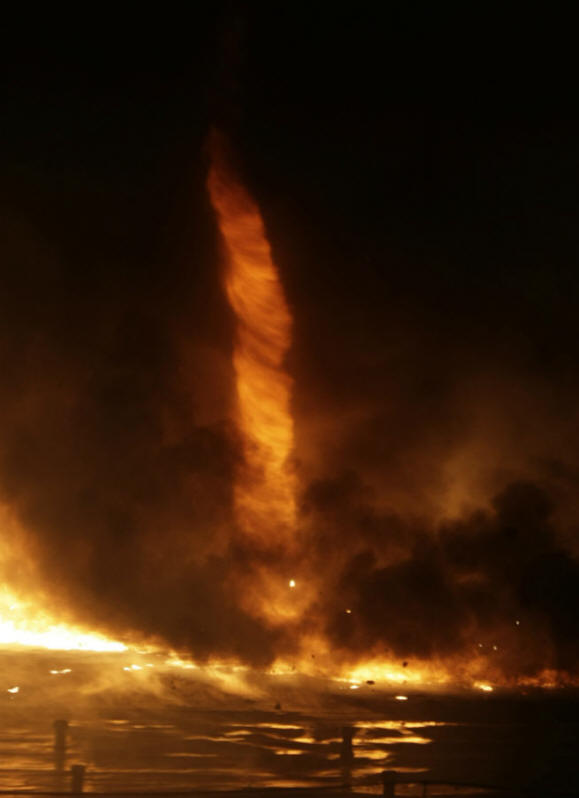 Požarni tornado na Madžarskem, 2011. © Viktor Veres / Blikk | Reuters Kmetje pogosto pogorejo svoja polja iz vogalov: ta metoda pomaga zmanjšati škodo, ki jo požar povzroči na ograji, in omejuje širjenje stebričkov. Vendar v tem primeru v središču polja, tvorijo se visoko temperaturni odsek in gibanje navzgor zrak – odlični pogoji za nastanek ognjenega vrtinca. Lep, a hkrati strašen pojav je najbolj spremljal večji požari in nesreče v človeški zgodovini: Veliki Londonski požar leta 1666, gori Moskva 1812, Veliki Požar v Chicagu leta 1871, jedrska eksplozija v Hirošimi leta 1945 in drugi. Uradno je dokumentiran prvi ognjeni vrtinec znanstveniki so ga leta 2003 opazili v Canberri v Avstraliji.