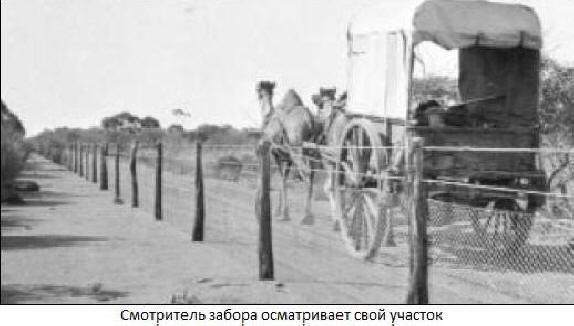 Leta 1907 je bila zgrajena ograja. Tri obrambne črte (skupna dolžina 3253 km.) Prečkala je celino od juga do severa. Ob ograji asfaltirala makadamsko cesto, po kateri so patruljirali zaposleni posebej ustvarjena storitev. Opis delovnega mesta se glasi: ograja je zaškripala – poravnala, našla koplje – pojdi spat, zagledala zajca – ubij ga brez usmiljenja.