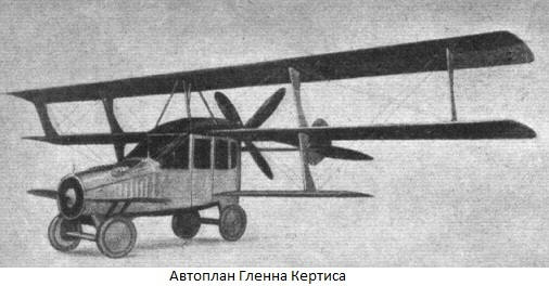 Ta “Autoplan” je zgradil eden od pionirjev letalstva Američan Glenn Curtis. 100 KM, razpon kril – 12m., da bi se lahko premikali tako po zraku kot po kopnem, bi moralo biti avion s pomočjo štirikožnega propelerja, nameščenega na zadnji strani. Avtomobil ni nikoli letel, največ njegovih dosežkov je nekaj kratki skoki. Omenjamo ga samo zato, ker je bil prvi poskus.