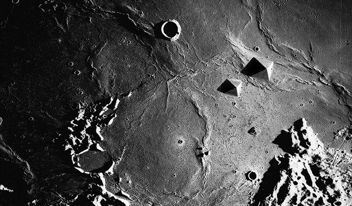 Richard Hoagland – nekdanji Nasin uslužbenec leta 2007, je govoril z senzacionalna izjava, da je videl slike (posnete Ameriški astronavti Apolon) luninega mesta pod ogromnim prozorna kupola (območje kriznega morja). Pod to kupolo lahko Zlahka je razlikovati med hišami, mostovi, stolpi in drugimi zgradbami. Fotografije približno istih lunskih mest še prej, leta 1979, inženirjev Vito Saccheri našel v knjižnici vesoljske agencije in Lester Hughes. Na teh slikah so znanstvenike še posebej prizadele piramide oz. narejene tako kot egipčanske, kot tudi razne leteče naprave, ki stojijo na vzletnih ploščadih in se dvigajo zgoraj površino lune.