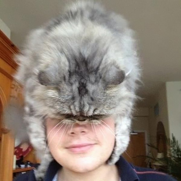 Verjetno so zato fotografije mladi “ekologi”, ki imajo raje normalno glavo Oboru – mačka. Ne, nikakor klobuk od mačke, namreč – živa mačka. Vendar pa se prepričajte sami …