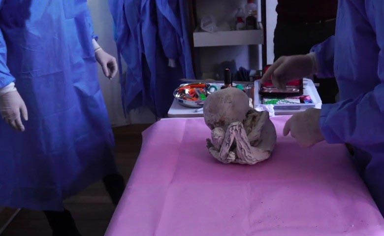 Tokrat je namenjen preučevanju petega in najtanjšega “tujec” – mumija, ki po mnenju znanstvenikov oz. pripada tujcu. Ta trenutek ta droben bitja so odvzela vzorce kostnega tkiva in od prsta, odkar trije mumija povzroča največ dvoma v njihovi resničnosti. Takšni vzorci so potrebni za testiranje DNK in radiokarbonske analize. Razen Poleg tega je bil odvzet rentgen telesa in opravljena računalniška tomografija. Vse to je zajeto v dokumentarni trak, na katerem je eno ali drugo ruske zdravnike podrobno komentira raziskovalne operacije Medicinske vede Konstantin Korotkov, ki je namestnik Direktorja Zveznega raziskovalnega inštituta fizične vzgoje Sankt Peterburga in hkrati specialist v področja alternativne medicine: