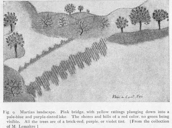Po vsaki seji je naša junakinja začela risati Marsovske pokrajine in prebivalci oddaljenega planeta. Dobro bitje dobra umetnica, gospa Smith je lahko upodobila v vsem svojem sijaju papirja, ki ga je domnevno videla na lastne oči. V Heleninih vizijah prebivalci rdečega planeta so se brez kolesa premikali nad zemljo posadke mečejo snope iskre. Marsovci živijo, pravijo, v hiše, ki so videti kot ogromne ptičje hiše. Še več, nebo tam rumeno-zelena barva, in še vedno jih je okoli veliko bledo vijolična jezera. Tuji otroci, ki se vzgajajo v posebnih hiš. Ko je bila v enem od njih, je ženska videla ogromne dvorane, visi z zibelkami z dojenčki. Otroci so se hranili rumenkasto. mleko, pridobljeno z molznimi tujimi tjulnji živali.