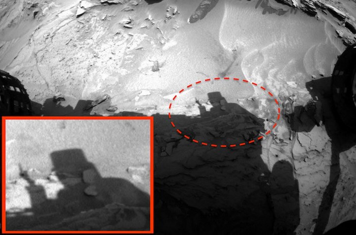 Na primer Scotta Waringa, ki ga ni treba zastopati Uporabniki interneta, ki na Marsu nenehno iščejo tiste ali druge artefakti, ki so bili prijazno namenjeni širši javnosti skozi rover Curiosity. Njegova zadnja najdba je senca Martian (morda tujec ali kakšen drug humanoid), ki najverjetneje raziskuje zemeljski rover in njegov klobuk (klobuk, ki je zelo podoben njej) slučajno zaide v to trenutek v kadru.