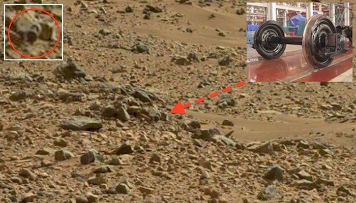 Uranološki paranormalni lonček na eni od posnetih slik Rover Curiosity, najden ne več ne manj – par koles, kot tiste, ki imajo, recimo, vozičke, ki se uporabljajo v rudniki ali vlaki.