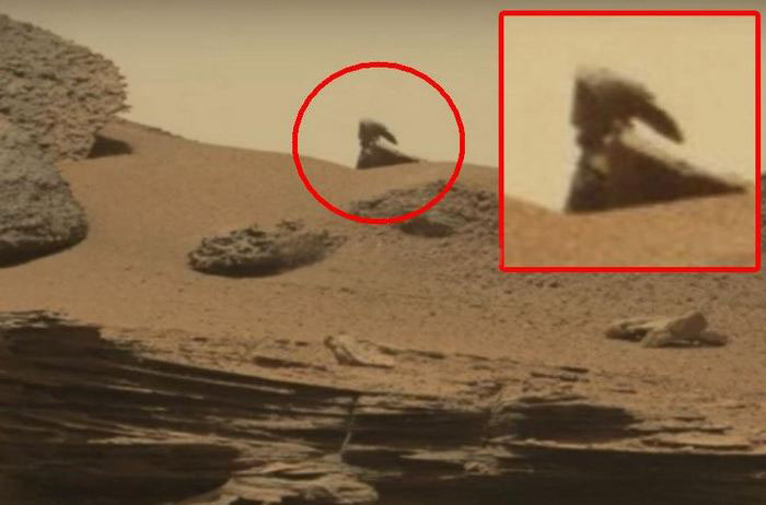 Skrivnostno figuro je ustrelil rover na robu Gale Crater. In če natančno pogledate celotno sliko, opazite virtualni arheolog, spodaj pa lahko vidite še enega zelo Zanimiv predmet, zelo podoben okamenelemu drevesu. To seveda ne marsovca, a kljub temu tehten dokaz da je bilo na Rdečem planetu vegetacija in s tem življenje, in najverjetneje zelo podobna Zemlji. Možno je celo da so bili Marsovci naši predniki.