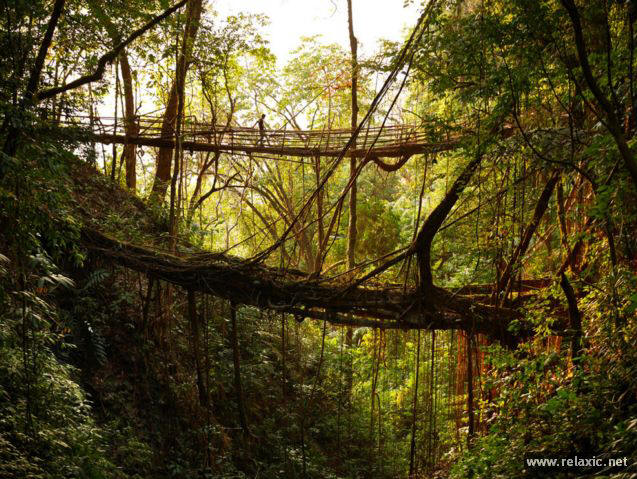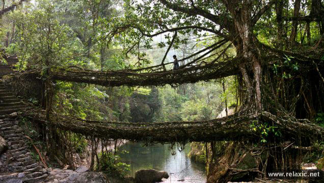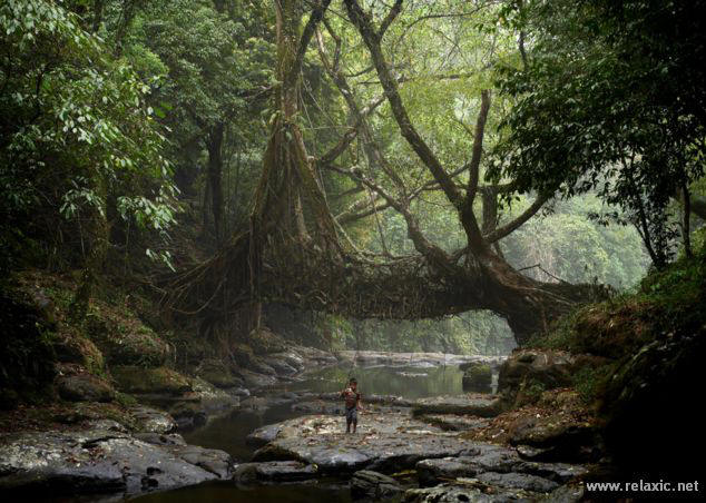 Fotografija odprtokodna indijska država Meghalaya, ki se nahaja na na vzhodu države ne zaman pravijo deževni kraj na svetu – za Tu pade 11 000 mm padavin in praktično dežuje dnevno, kar je absolutni rekord. Prebivalci so že tako navajeni na nejasnosti vremena, da so senčniki postali sestavni del njihova oblačila. Še ena edinstvena državna atrakcija so vzmeteni mostovi, pleteni iz korenin dreves gume. Novozelandski fotograf Amos Chapple je bil pred kratkim obiskal Meghalai in prinesel te čudovite slike.